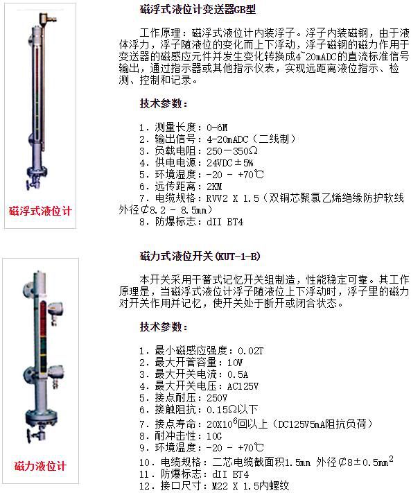 KUT型磁力記憶式液位開關,實現高低液位報警;